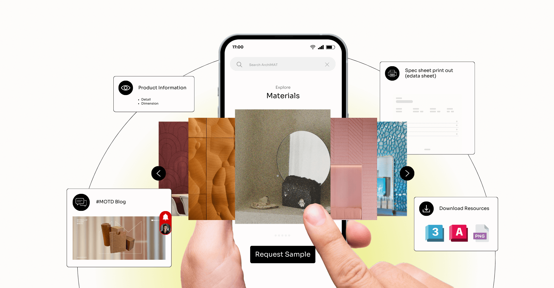 One click to request for sample and contact brand owner directly for your project.