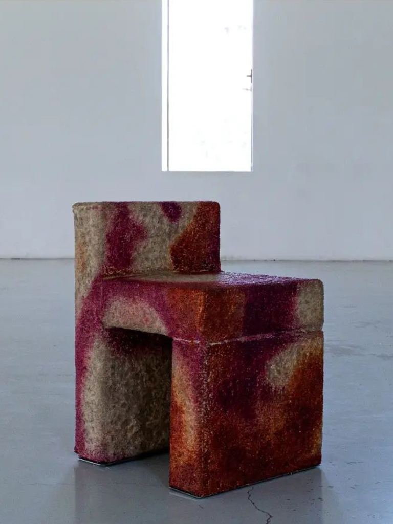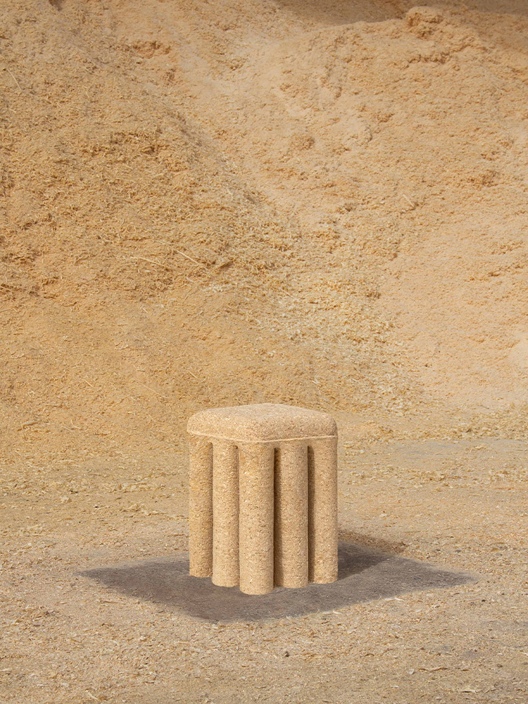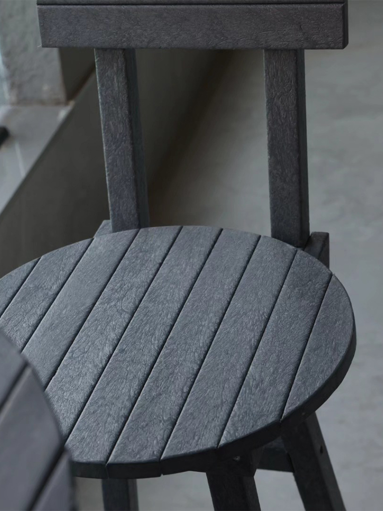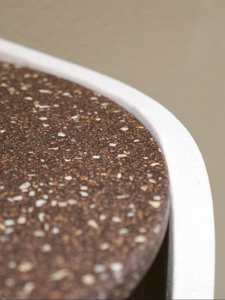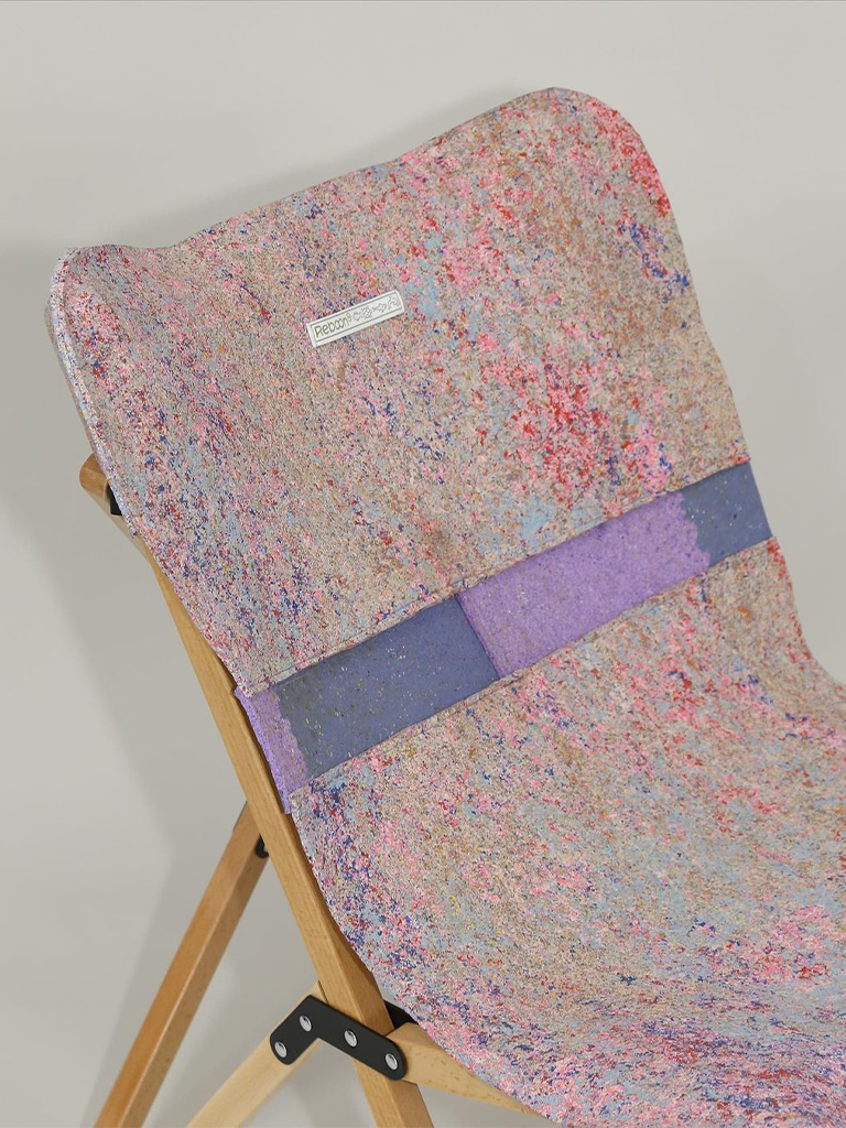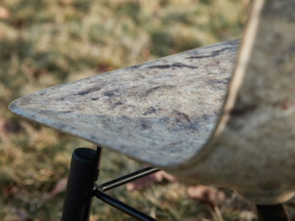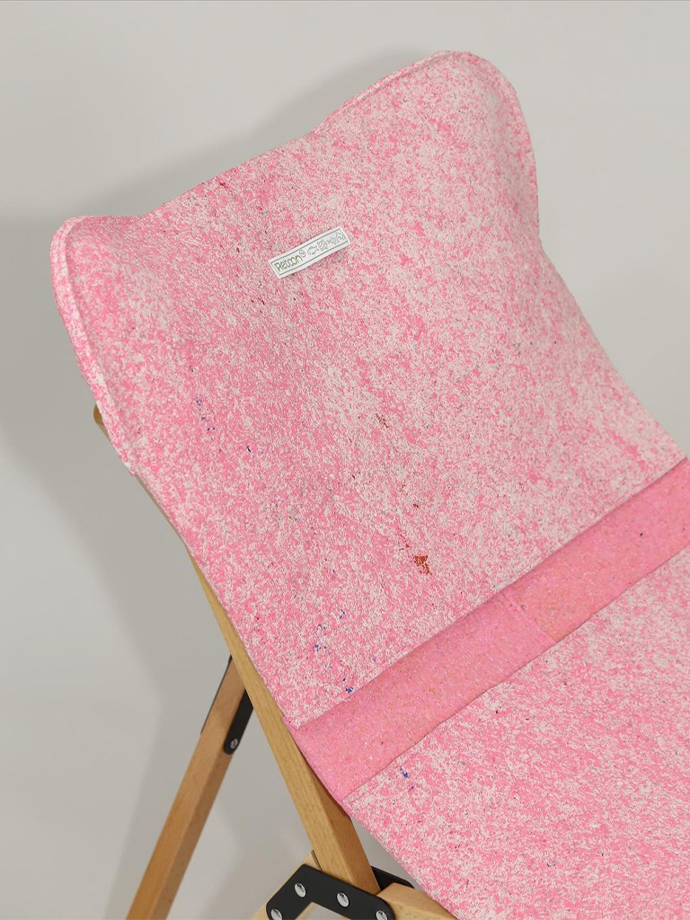 Within the concept “less is more”, this product consists of only 3 materials. The finishing is made from leather waste from the Dutch leather industry and it is also available in recycled wine corks or color. A seamless product suitable for indoor and outdoor use. The chair has a wonderful comfort and very good stability. No wooden or metal frame is used in the product.