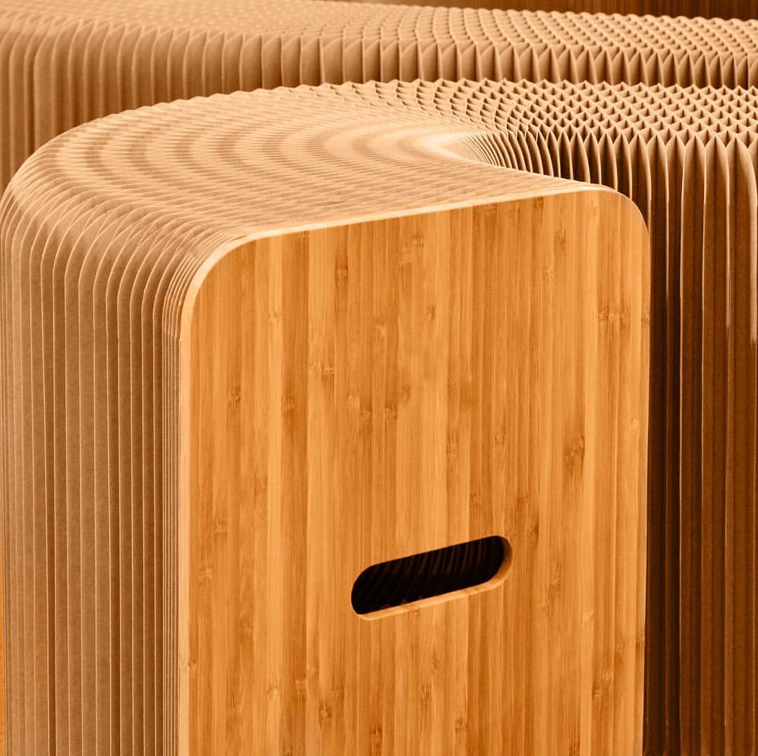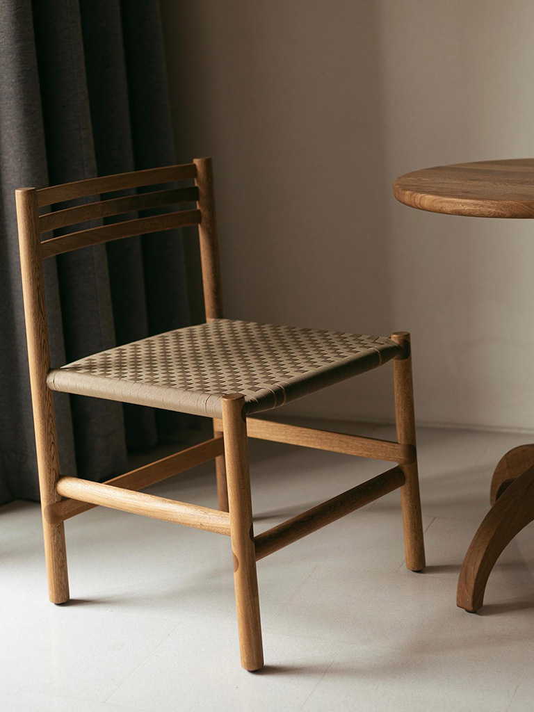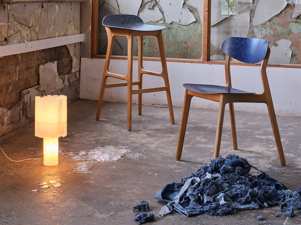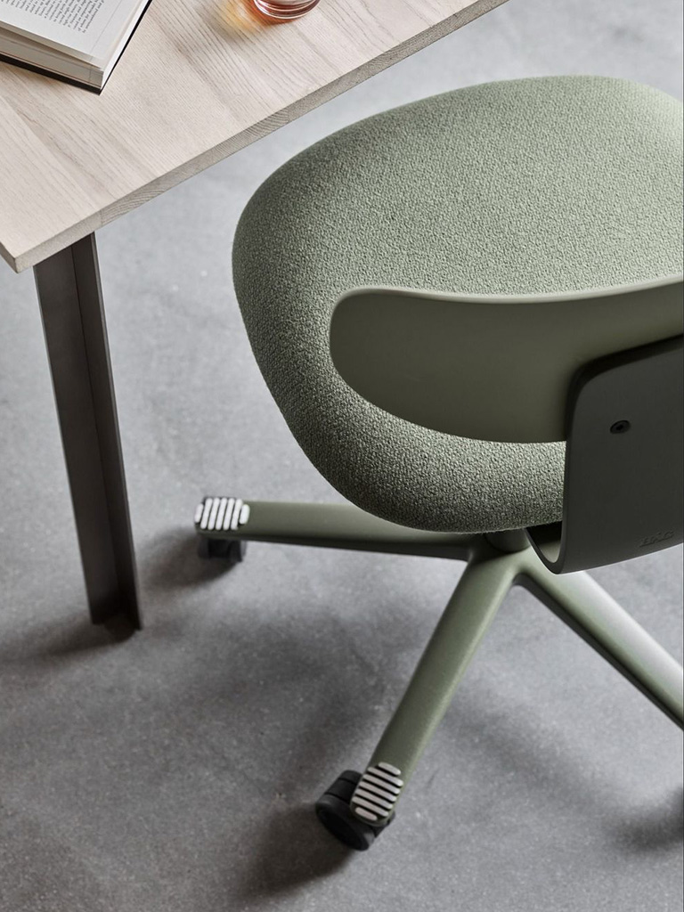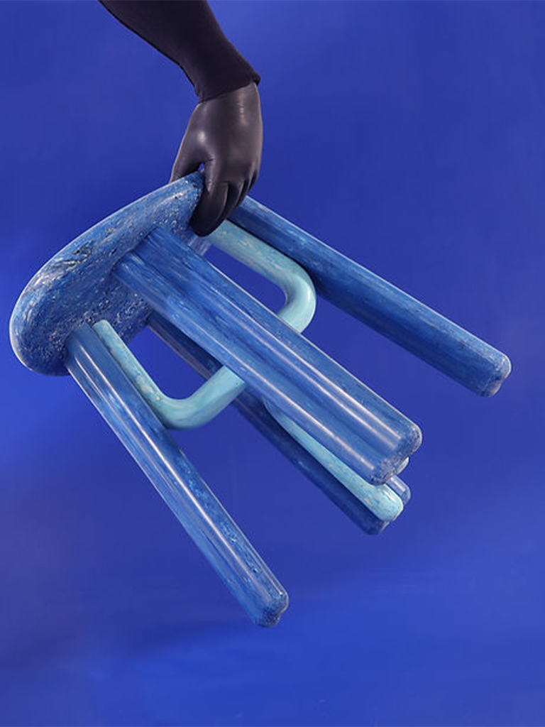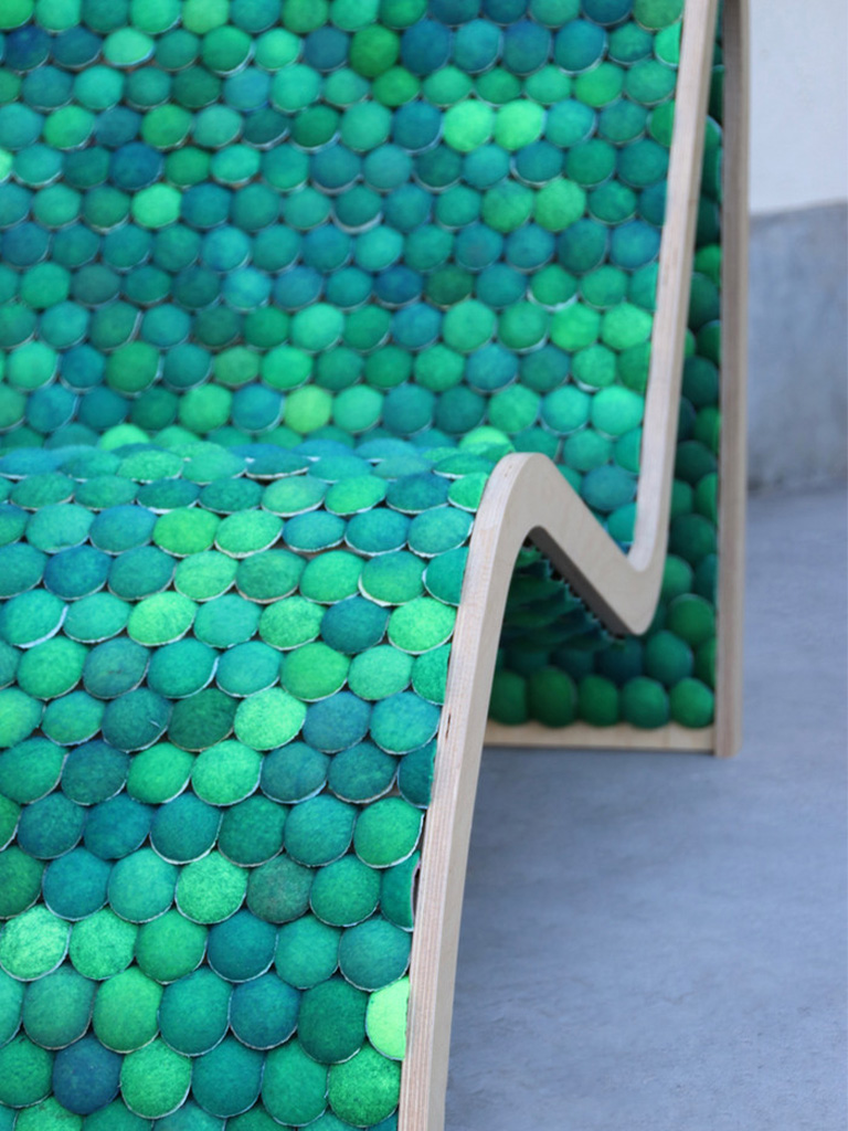 Within the concept “less is more”, this product consists of only 3 materials. The finishing is made from leather waste from the Dutch leather industry and it is also available in recycled wine corks or color. A seamless product suitable for indoor and outdoor use. The chair has a wonderful comfort and very good stability. No wooden or metal frame is used in the product.