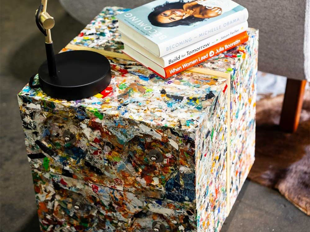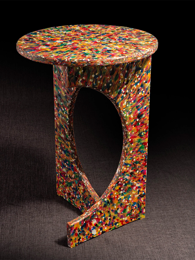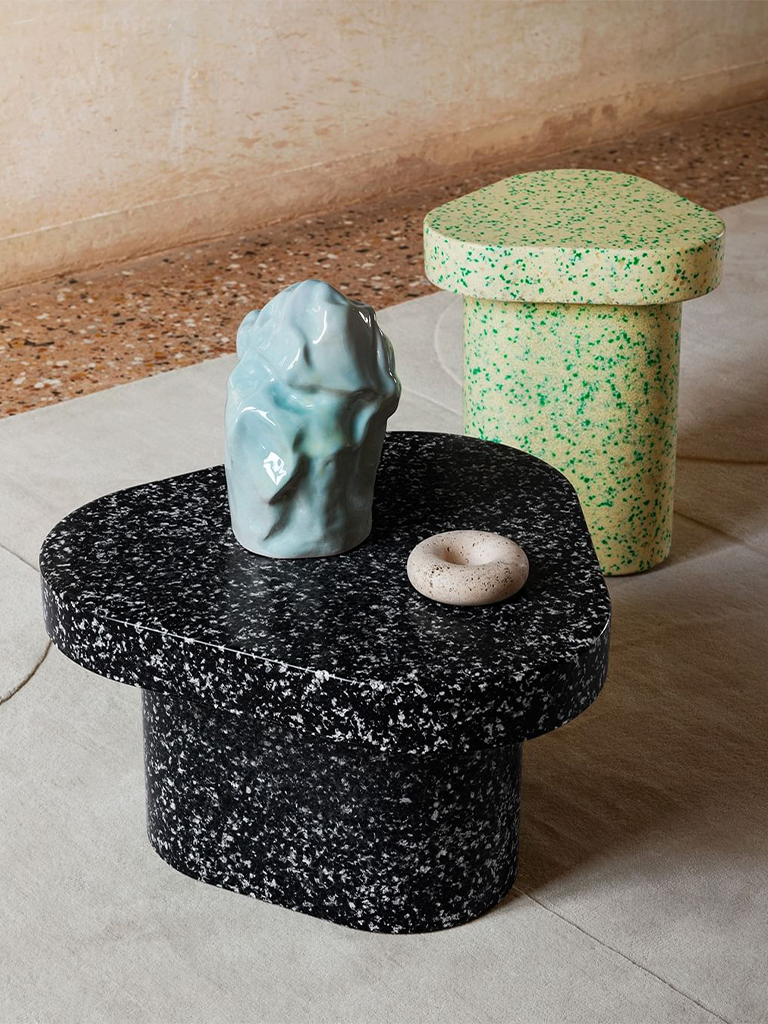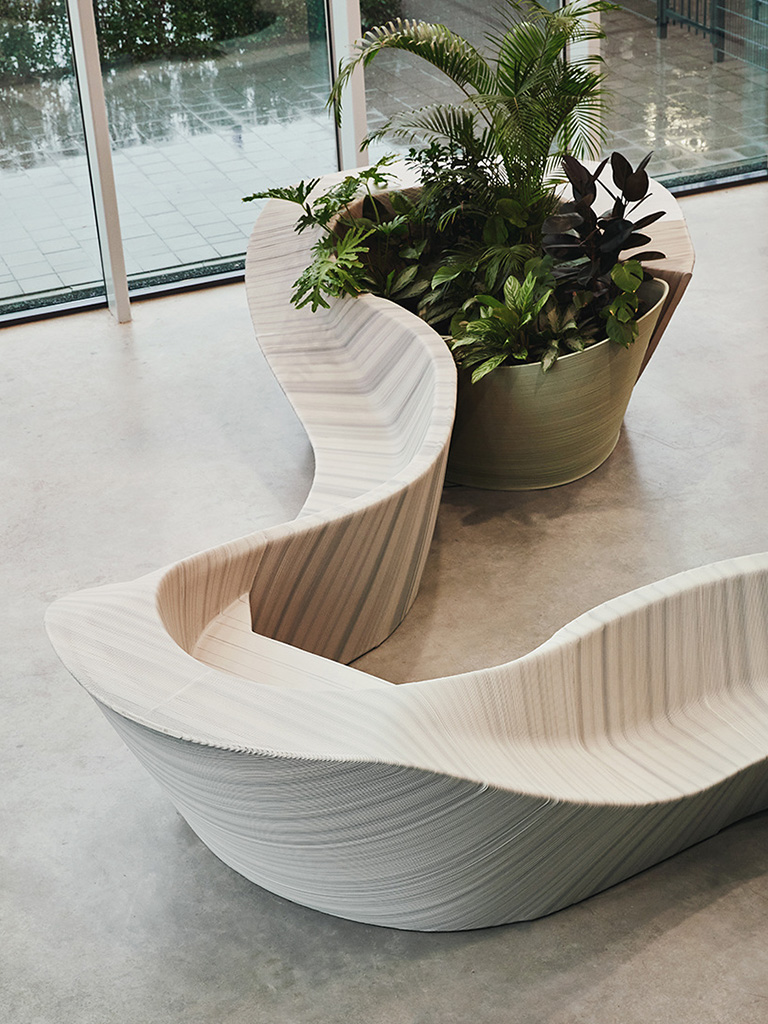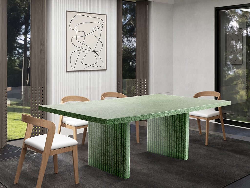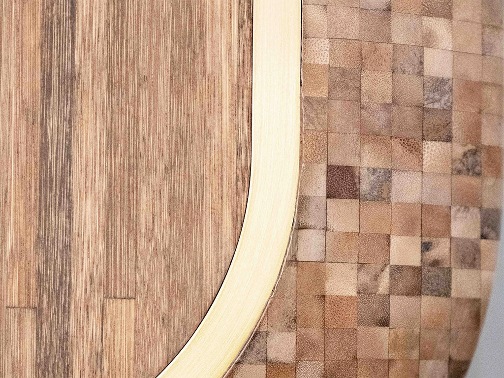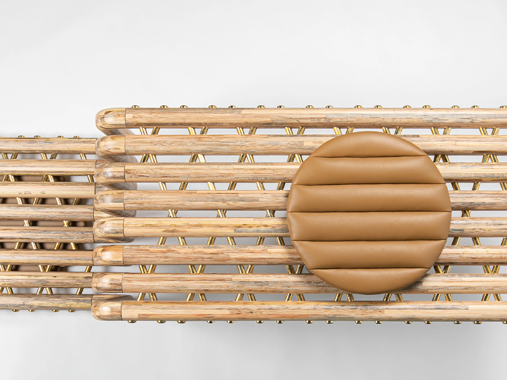 Within the concept “less is more”, this product consists of only 3 materials. The finishing is made from leather waste from the Dutch leather industry and it is also available in recycled wine corks or color. A seamless product suitable for indoor and outdoor use. The chair has a wonderful comfort and very good stability. No wooden or metal frame is used in the product.