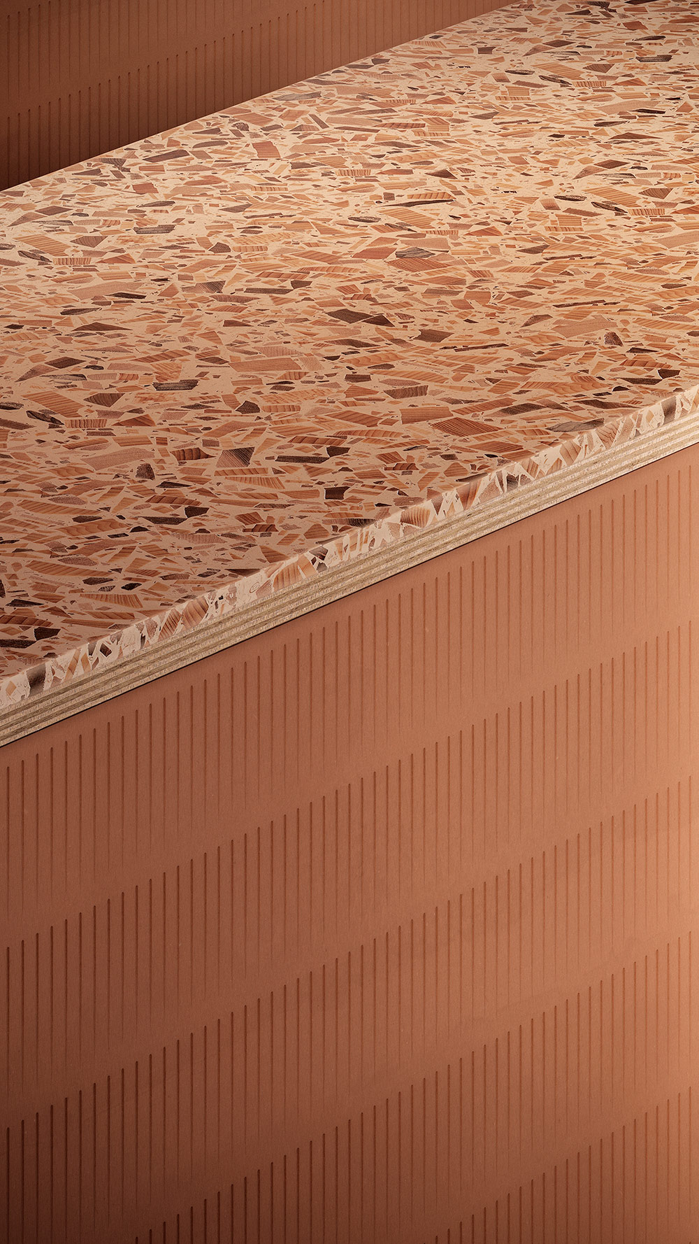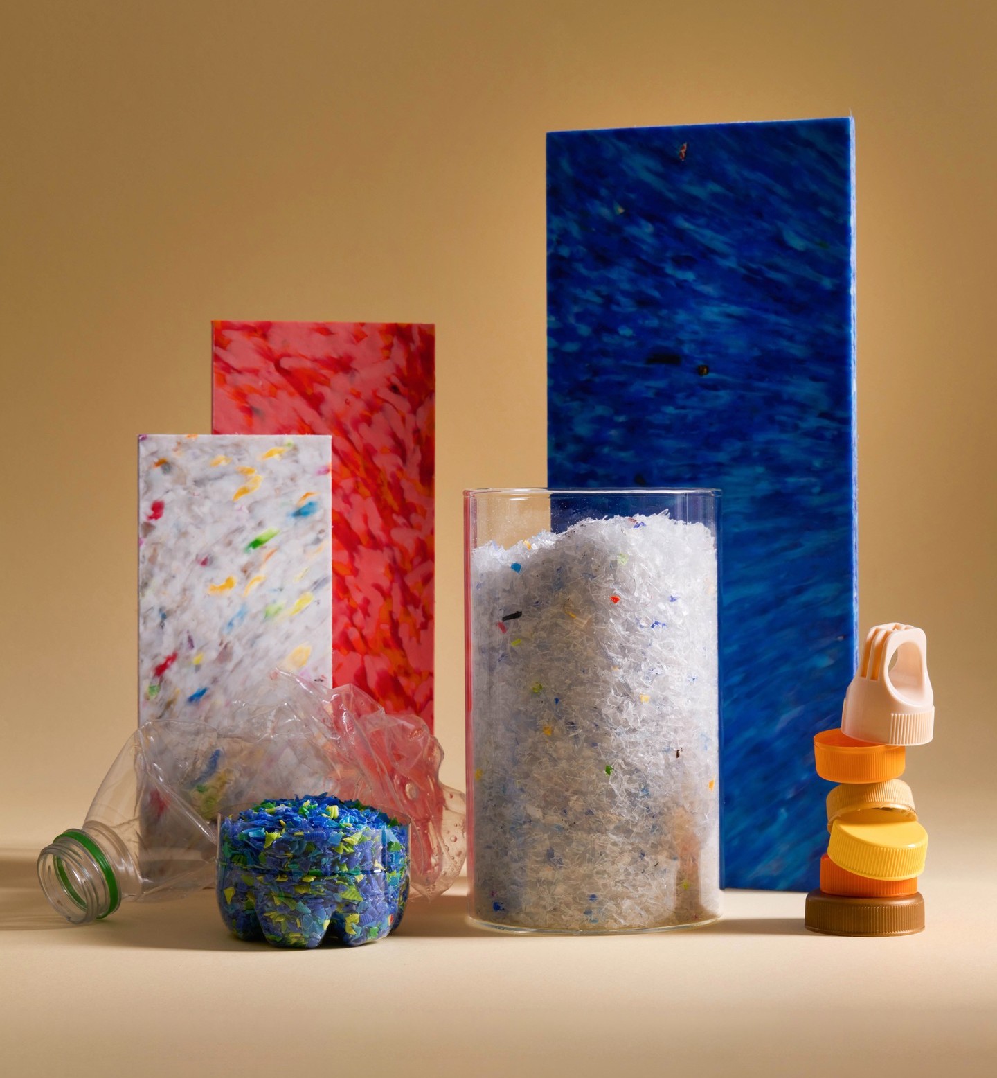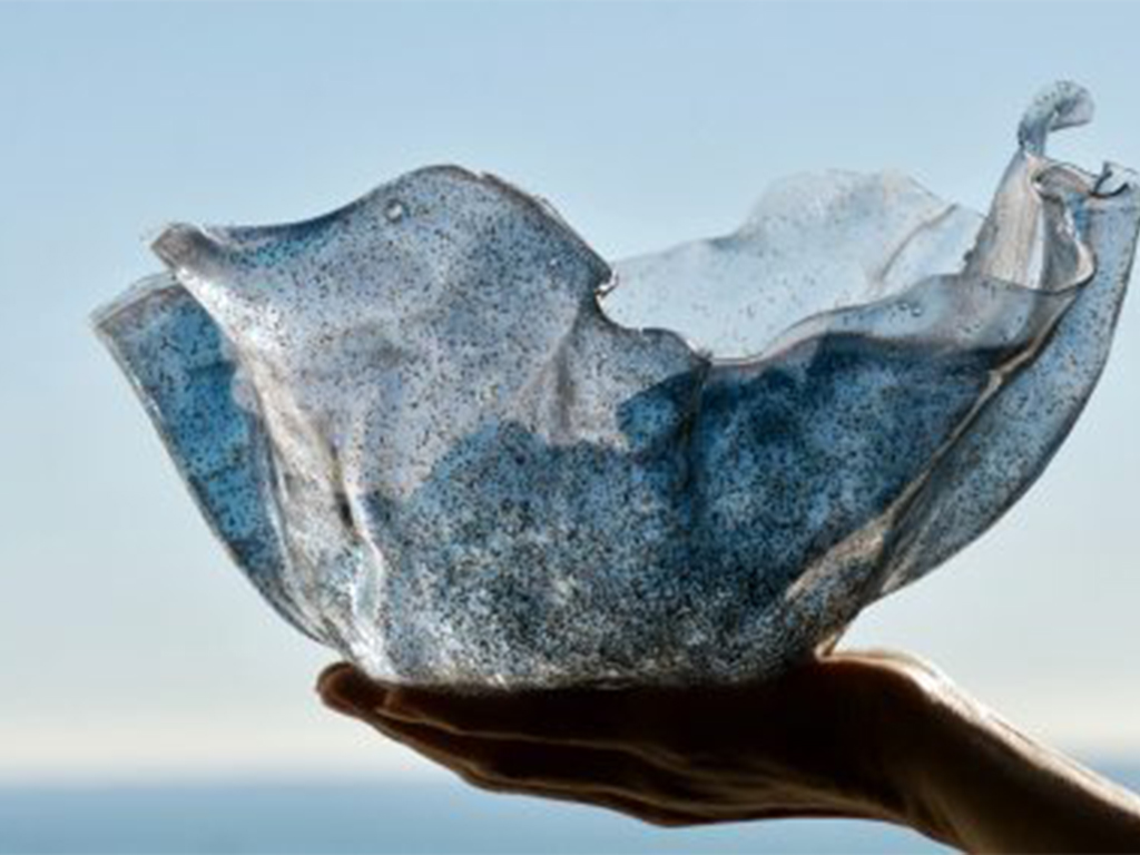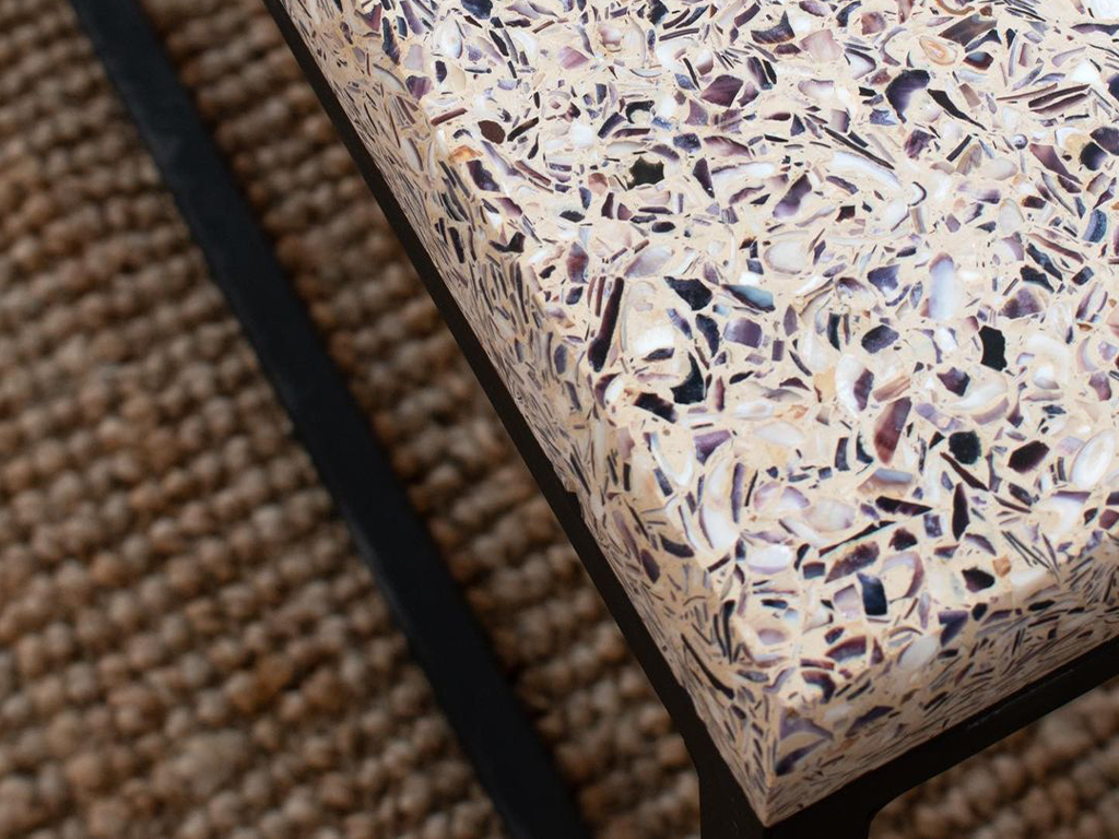 Designed with sustainability as a core driving force, the eight-seater dining table tis a bespoke design piece consisting of 193 kg LDPE plastic waste.