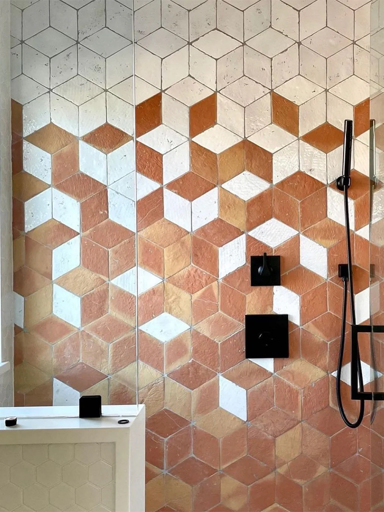 The 4×4 Zellige Square tiles are the center piece of Zellige tile. They are versatile, they can be installed indoors and outdoors, on the floors and walls. Normal square install, diagonal or even staggered are some of the ways you can get a nice pattern with your 4×4. We also encourage our clients to explore combining 2 or three colors of the same shape to unveil a limitless amount of design possibilities.
