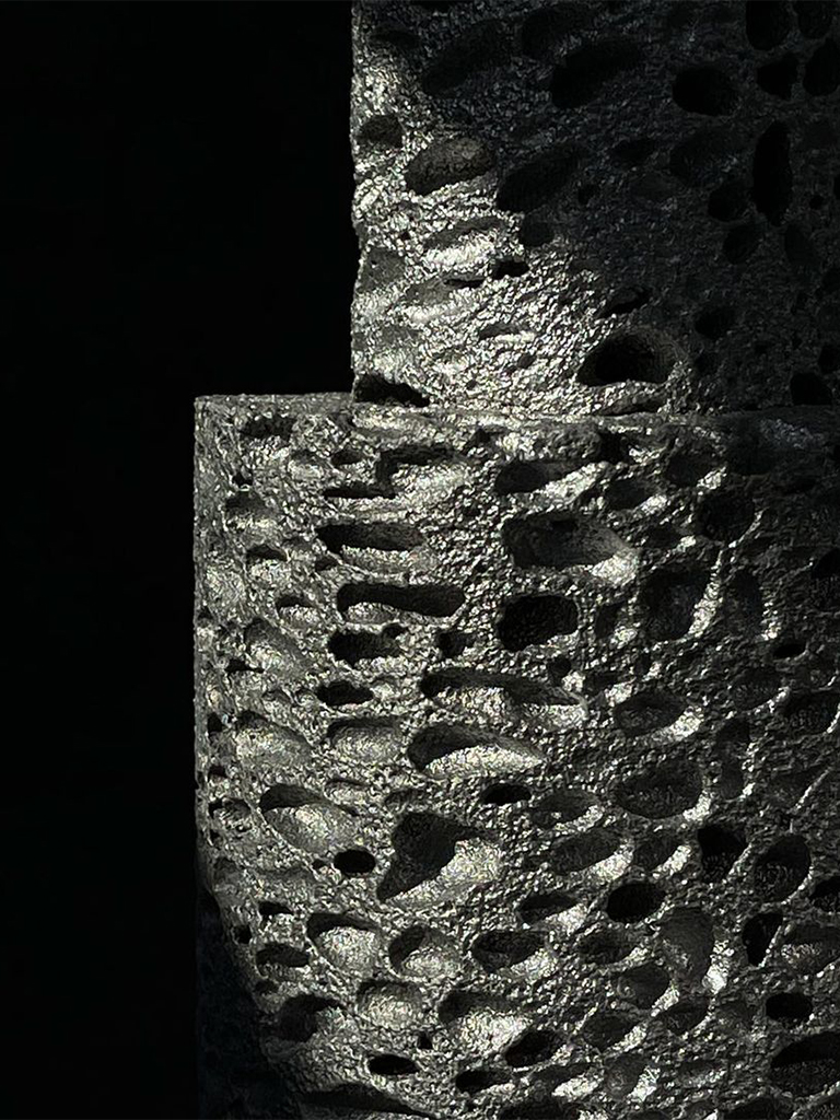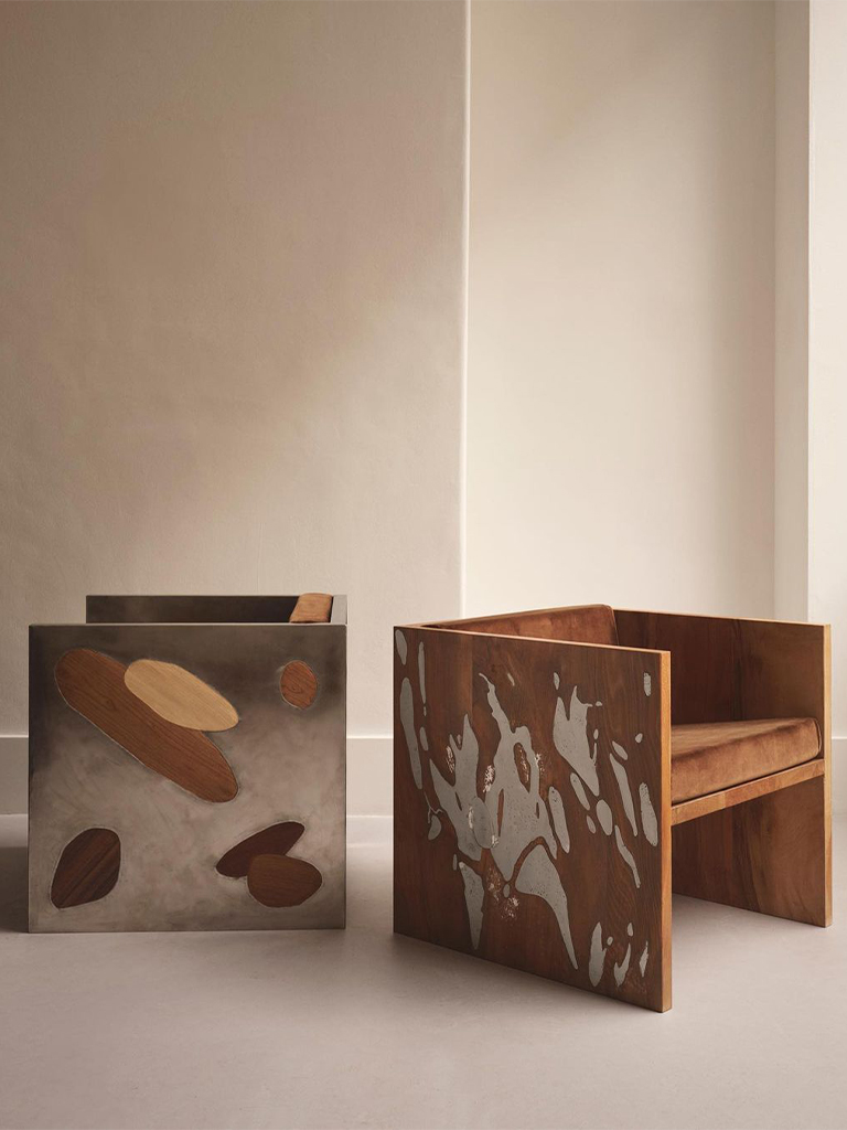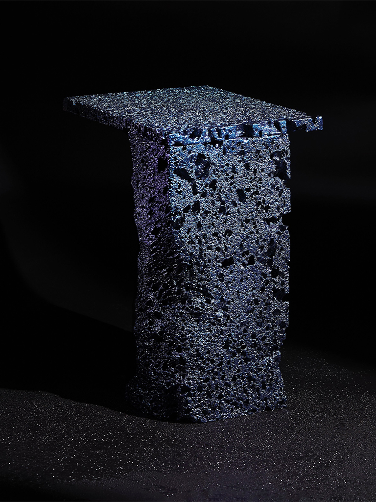 This story is brought to life in this coffee table through a medley of metal forms – both sheet and cast – with semi precious stones that give voice to the mosaic of the forest.